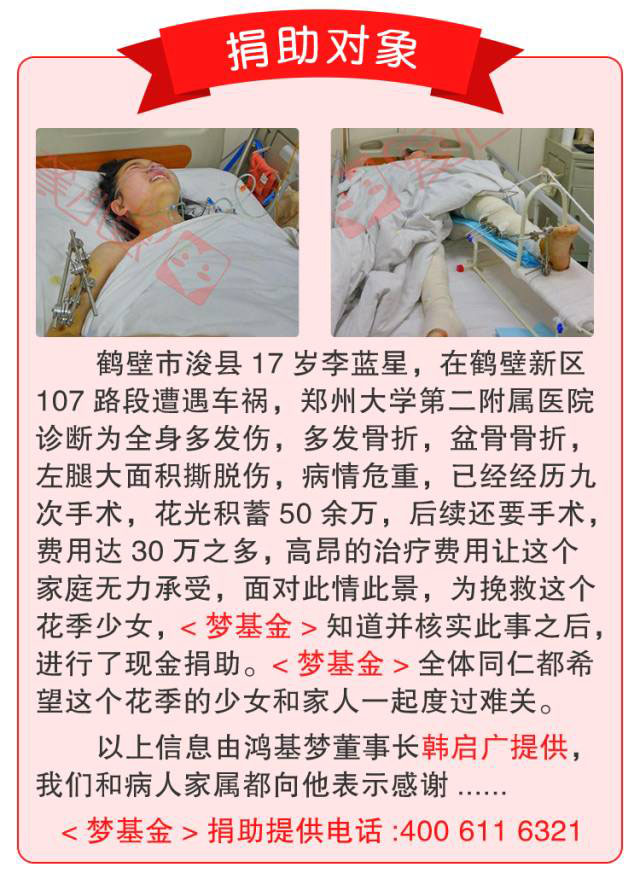 鶴壁17歲車禍重度傷者獲得捐助