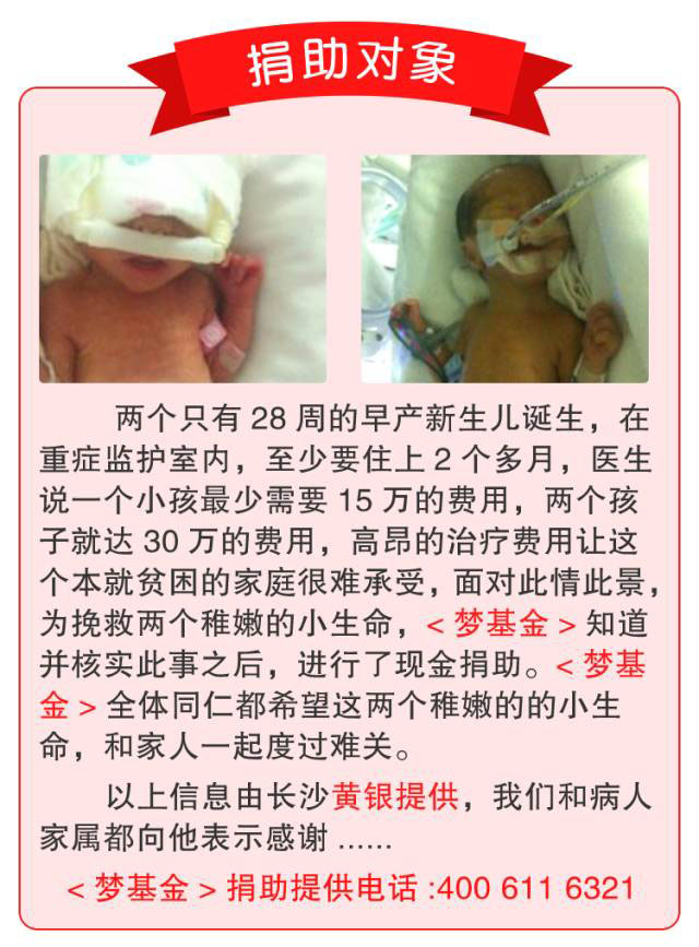 兩早產(chǎn)兒獲得捐助